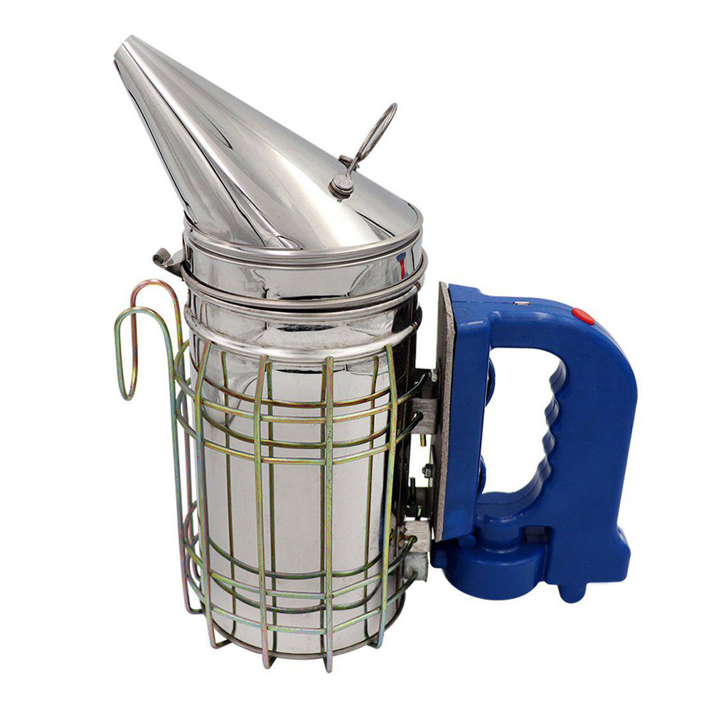 Дымарь - приспособление для образования дыма, усмиряющего пчёл при осмотре пчелиных семей. Дымарь для пчел из нержавеющей стали с электрическими мехами. Дымарь работает от 4 батареек (или заряжаемых аккумуляторов) типа АА. Кнопка включения (отключения) наддува находиться сверху на рукоятке.