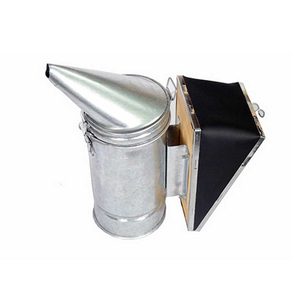 Дымарь пасечный предназначен для подавления агрессии пчел. Дымарь состоит из наружного корпуса и внутреннего стакана с отверстиями в дне, а так же крышки с решеткой и патрубком, и мехов, которые состоят из двух дощечек герметично скрепленных друг с другом кожей или кожзамом , и находящейся между ними возвратной пружины. В стакан пчеловод закладывает топливо, которое разгорается, как только пчеловод начинает нагнетать воздух при нажатии на меха. Дым проходит сквозь решетку в крышке и выходит наружу струей через отверстие, которая направляется на пчел. Материал - оцинкованная сталь.
