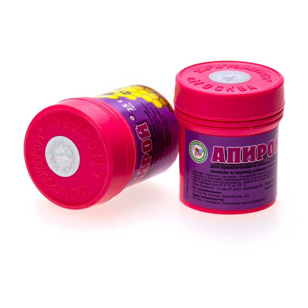 «Апирой» — препарат, предназначенный для привлечения и поимки роев на пасеках в период роения пчелиных семей, содержащий в своем составе гераниол и цитраль