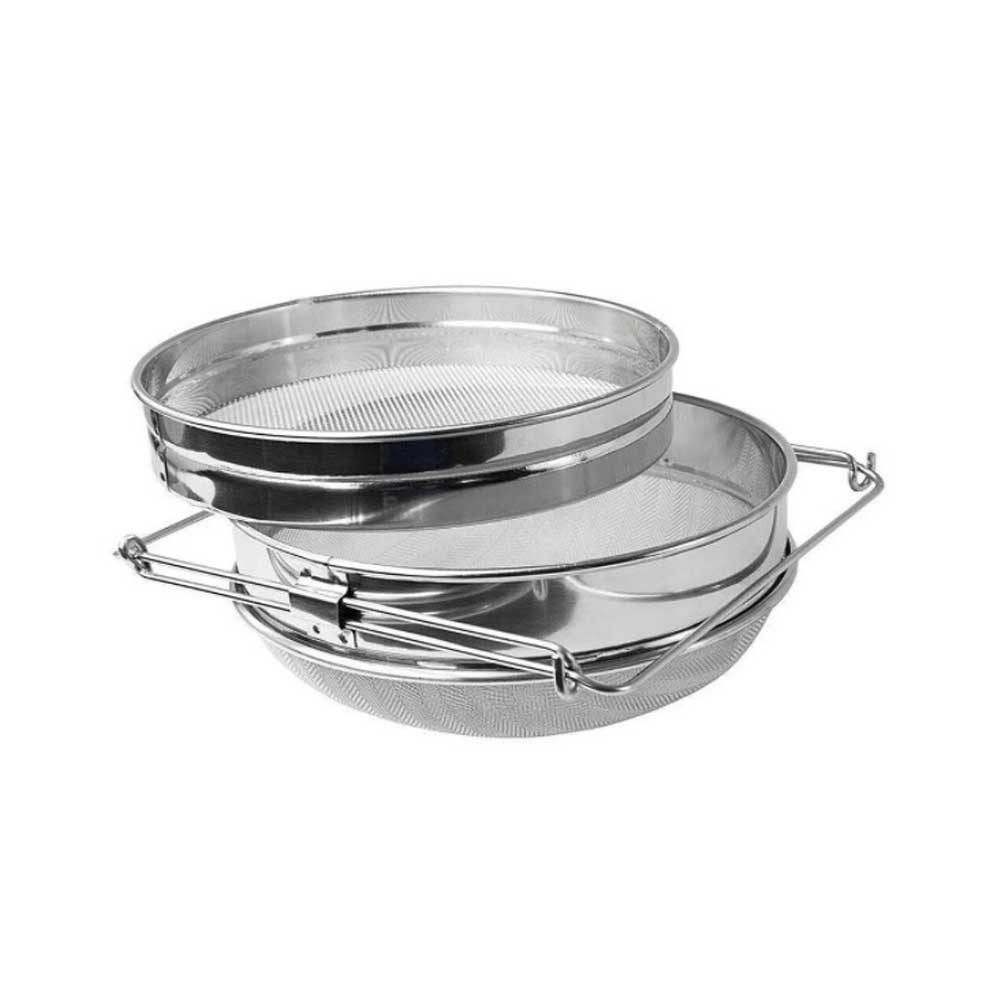 Данный фильтр для меда крайне удобен в использовании. Верхняя часть с более крупными ячейками- плоская, легко и ровно садится на нижнюю выпуклую часть. Нижний фильтр имеет мелкие ячейки, которые не пропустят даже мелкий мусор.