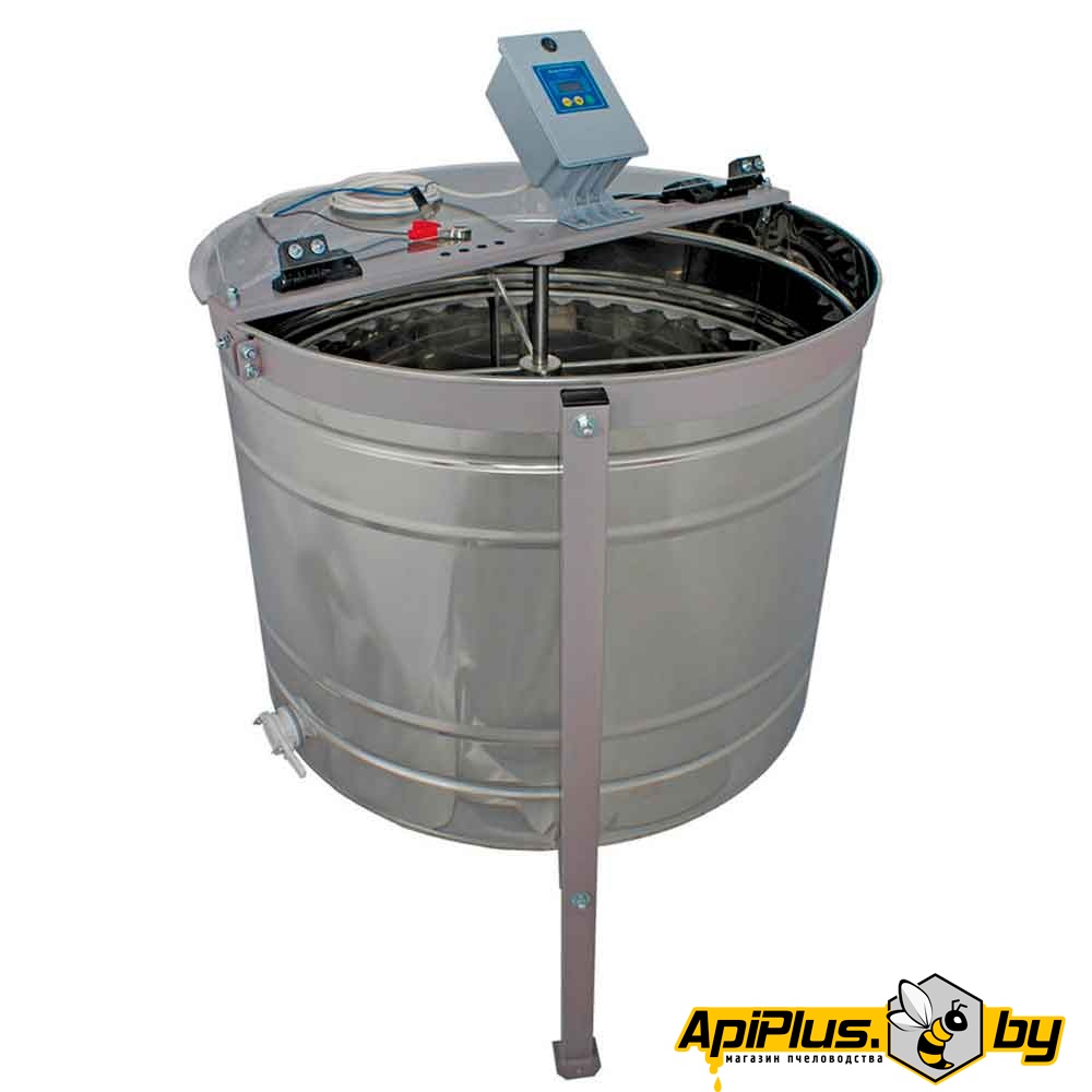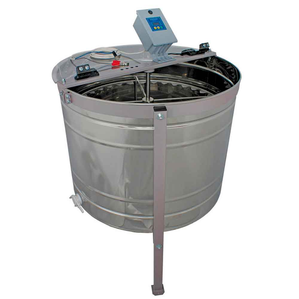 Данная модель радиальной рамочной медогонки «Лысонь» подойдёт для стационарных и для передвижных пасек. Электрическая медогонка способна работать на 12-вольтовом аккумуляторе без подключения к сети. Её цифровой блок управления имеет 10 режимов скорости.