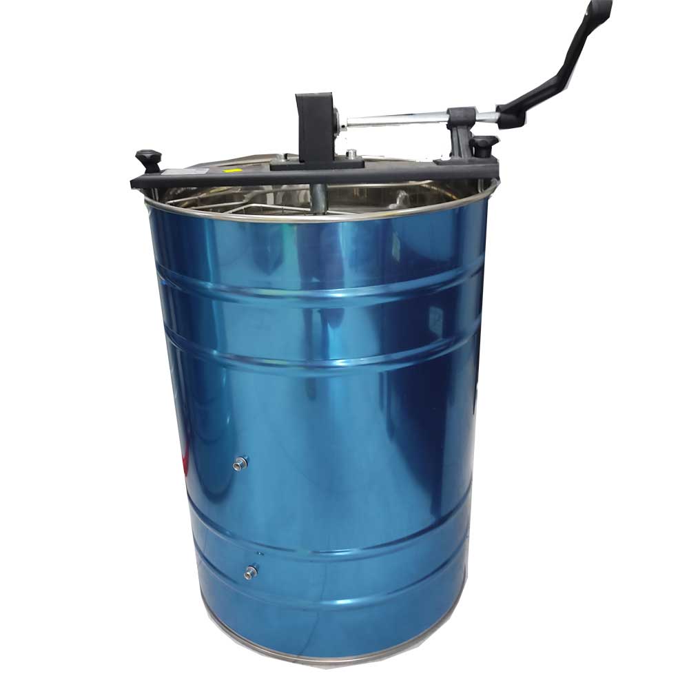 Корзина медогонки вмещает две рамки каждого типа. Ручной привод и небольшой вес делают её мобильной и пригодной к использованию даже в лесу.