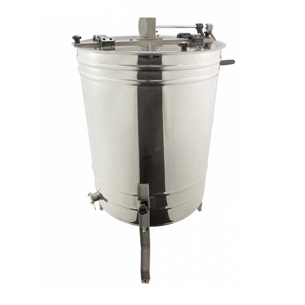 Поворотные кассеты вмещают себя рамки (Дадан, Рут), а удобное расположение экономит время в процессе откачки. Прозрачная крыша из оргстекла надежно закреплена на верхней раме медогонки.