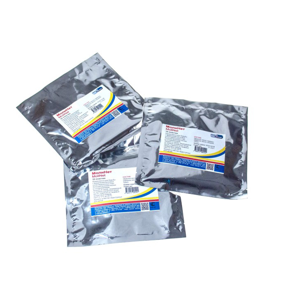 "МолиНет" - препарат для борьбы с вредителями восковых сотов медоносных пчёл большой восковой молью (Galleria Mellonela) и малой восковой молью (Achroia Grisella) в сотохранилищах., содержащий в своем составе действующие вещества эфирное масла кипариса, герани, кедра и тимол.