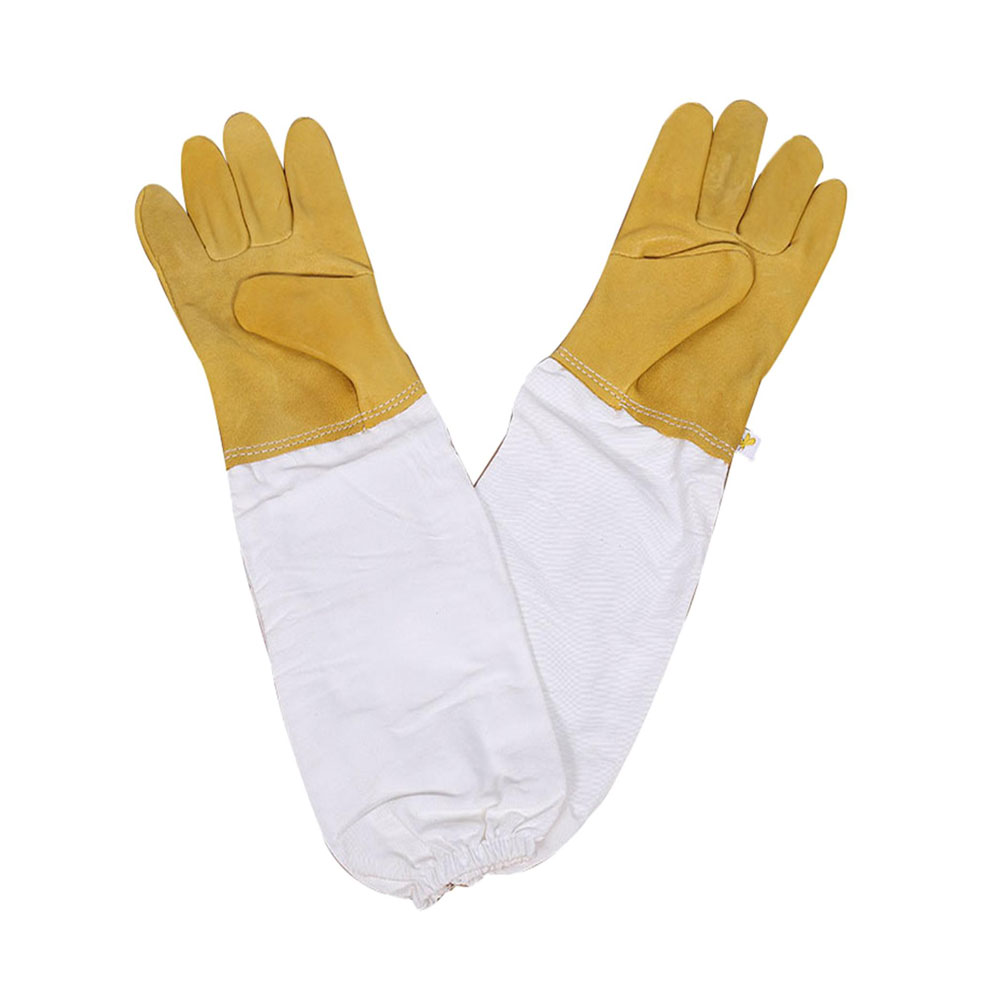 Перчатки пчеловода (кожа) с сетчатым нарукавником