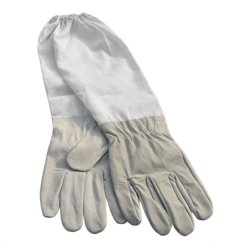 Перчатки пчеловода — важный атрибут одежды пасечника. Перчатки сделаны из натуральной кожы с плотными хлопковыми нарукавниками. Нарукавник имеет вшитую резинку, что предотвратит попадание пчел внутрь. Натуральная кожа — очень практичный и долговечный материал, который надежно защитит Вас от пчелиных укусов.