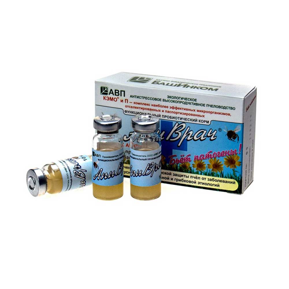 "АпиВрач" - содержит 5 штамов живых бактерий Bacillus subtilis 12B, Bacillus subtilis 11B, Bacillus subtilis 1К, Bacillus subtilis 3Н, Bacillus subtilis 3K в среде культивирования. Общее количество жизнеспособных клеток бактерий в 1 мл корма не менее 1×108 КОЕ (колониеобразующих единиц).