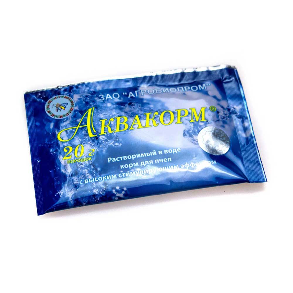 Препарат "Аквакорм" - сбалансированный комплекс солей, микроэлементов и витаминов. С высоким стимулирующим эффектом, повышает активность пчелиных семей, активизирует яйцекладку пчелиных маток и интенсивное выделение маточного и пчелиного молочка пчелами-кормилицами, улучшает зимовку пчелосемей.