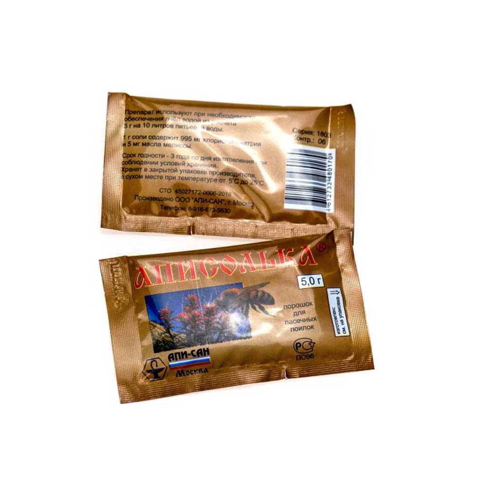 Препарат "Аписолька" применяют в течение активного пчеловодного сезона при необходимости обеспечения пчёл питьевой водой. Для этого используют обычную питьевую воду с добавлением предлагаемой соли из расчёта 5 г на 10 л.