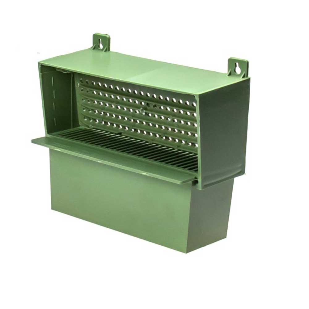 Описание: Применяется во время сбора цветочной пыльцы, приносимой пчелами в виде обножки. Навешивается на переднюю стенку улья за петли так, чтобы решетка с калиброванными отверстиями была размещена напротив нижнего летка. Верхний леток закрывается, а прилетная доска убирается, чтобы пыльцесборник плотно прилегал к передней стенке улья и пчелы могли попасть в улей только через отверстие в пыльцесборнике, тогда пыльца, размещенная на задних ножках пчелы в виде комочка, задевается за края отверстий и падает в специальный ящичек для ее сбора. В случае отсутствия приноса обножки, решетка легко вынимается из корпуса пыльцесборника и пчёлы беспрепятственно попадают в улей.