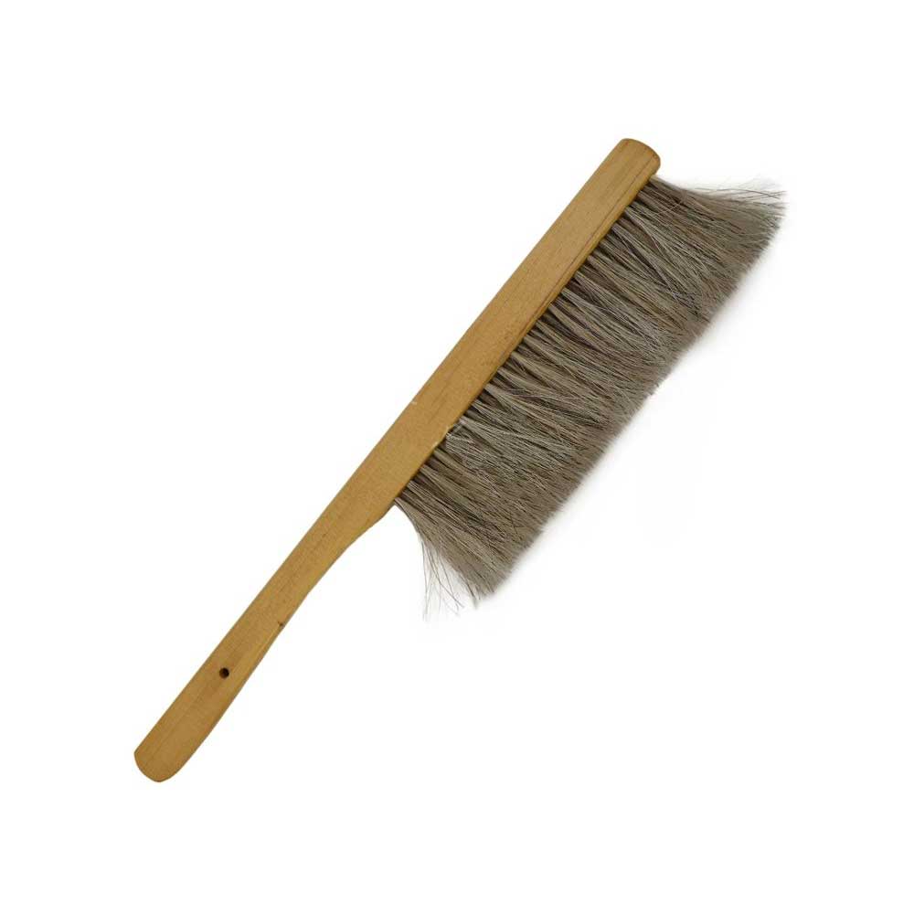 Высококачественная щетка-сметка изготовлена из мягкой натуральной конской щетины, расположенной в три ряда и деревянной ручки, покрытой лаком. С помощью данной щетки очень легко сметать пчел с сотов и стен улья не повреждая их, в таком ворсе пчелки не запутываются. Также данная щетка может быть использована при уборке дна улья.