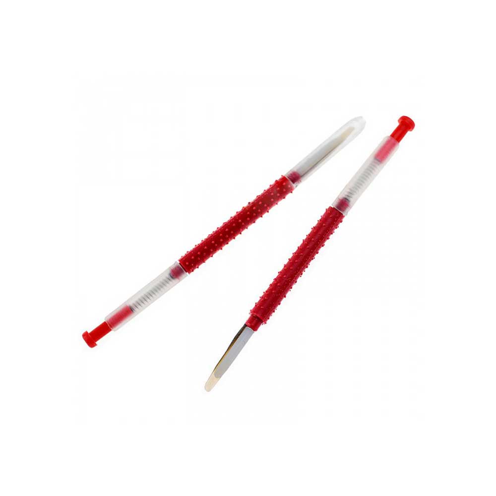 Захват под личинку - приспособление для переноса личинок в мисочки. Уникальный захват с пластиковым толкателем, обладающий очень мягким кончиком, позволяющим подводить плоскость захвата под личинку в ячейке. Для снятия личинки достаточно нажать на пружинное окончание и очень аккуратно снять личинку с поверхности. Данным приспособлением обеспечивается большая производительность работы.