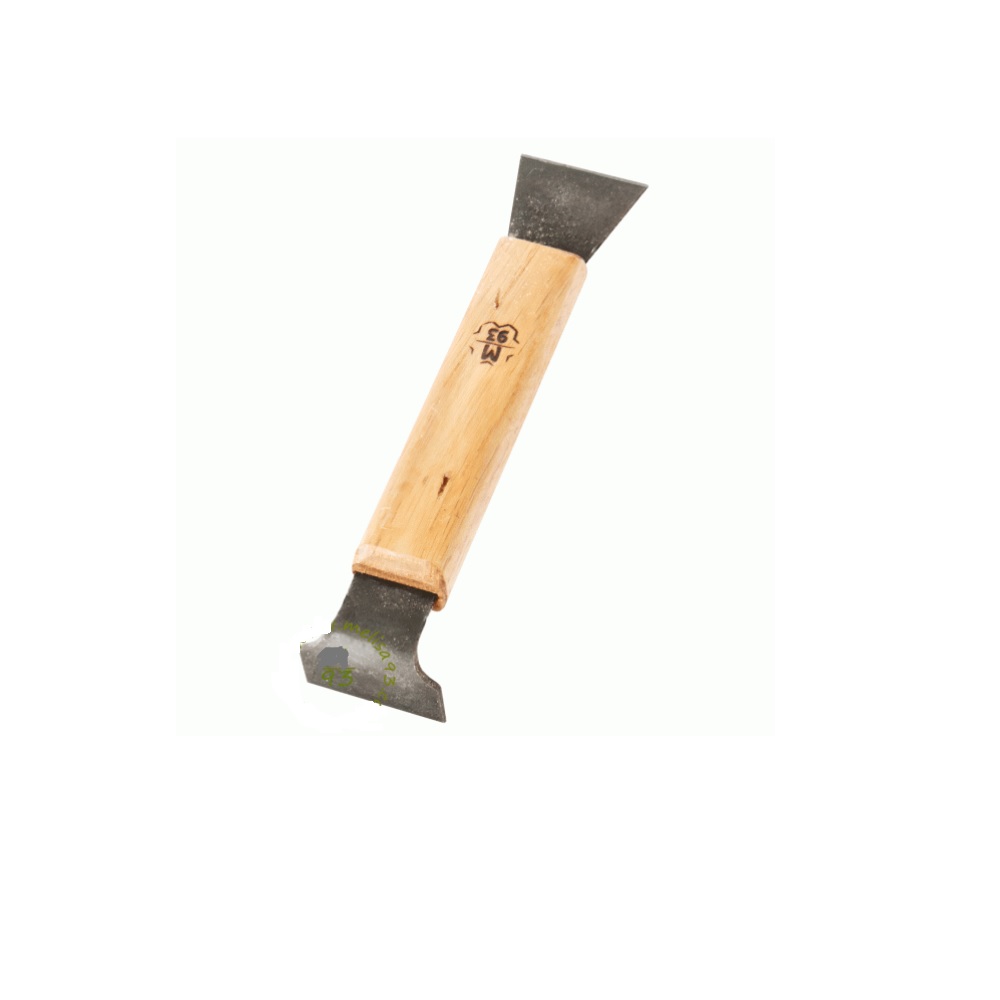 предназначена для очистки ульев от загрязнений, для раздвигания рамок в улье, разделения корпусов или магазинных надставок.Стамеска изготовлена из чёрной стали 65Г,