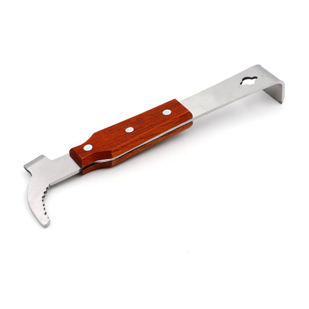 Многофункциональная стамеска пчеловода совместила в себе также функции гвоздодера и подъемника первой рамки. Стамеска длинной 260 мм за счет рычага позволяет с легкостью передвигать полномедные рамки даже подросткам или женщинам. Простая и очень надежная конструкция.