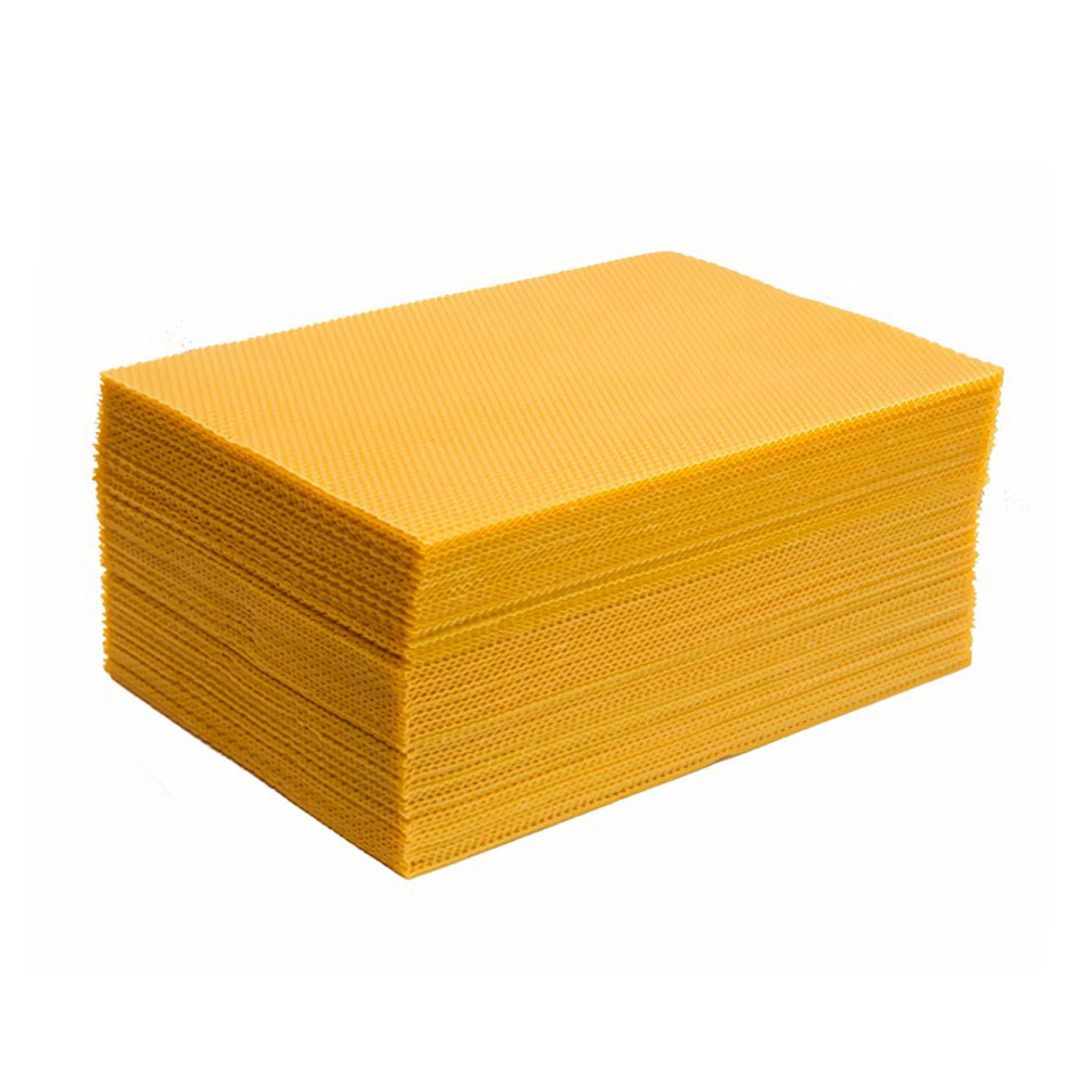Вощина «Дадан» полумаксимум - это коммерческий продукт для рамок 435×300 мм, отличающийся увеличенным углом ячейки для ускоренного строительства сот и высокой прочностью. Изготовленная из очищенного воска, эта продукция способствует быстрому расширению гнезда и подходит для пасек любого масштаба.
