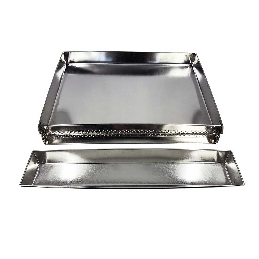 Материалы и элементы, используемые при изготовлении товара: данная арматура, представляет собой прямоугольный лоток (одна сторона перфорирована отверстиями диаметром 2,5 мм) для загрузки сырья и контейнер для сбора растопленного воска. Арматура изготовлена из оцинкованной стали. Контейнер изготовлен из более прочного металла, чем лоток, что повышает срок службы изделия.